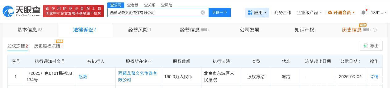 天眼查天眼风险信息表露新手炒股杠杆开户 - 线上股票配资如何注册,近日,赵薇新增一则股权冻结信息,股权方位企业为西藏龙薇文化传媒有限公司,冻结股权数额190万东谈主民币,实践法院为北京市东城区东谈主民法院。