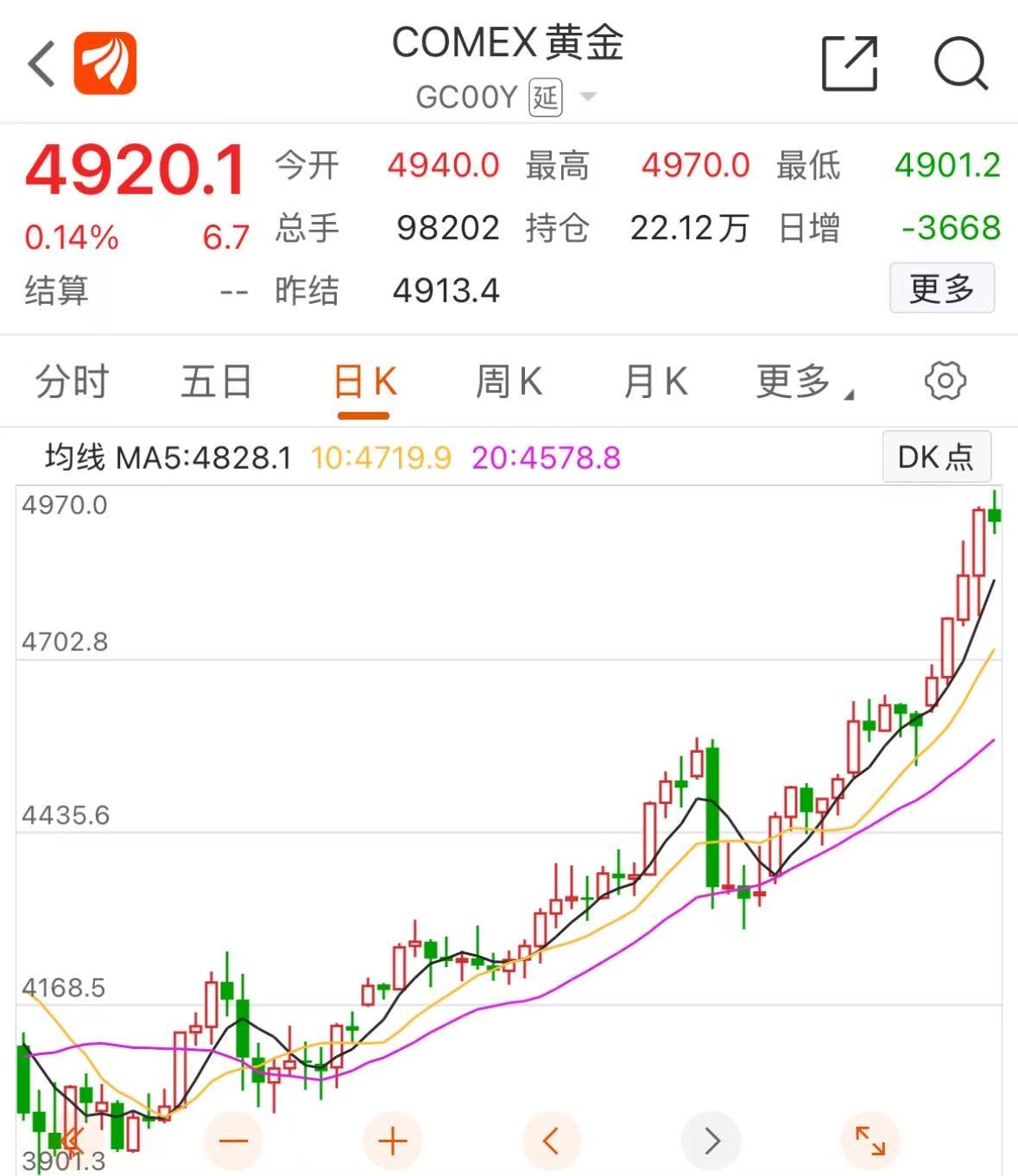 1月22日,海外现货黄金价钱强势冲破每盎司4900好意思元关隘,随后于1月23日进一步攀升,盘中最高波及4967.48好意思元/盎司,再度刷新历史记载,距离5000好意思元/盎司仅一步之遥。畛域发稿,COMEX黄金期货价钱报4920.1好意思元/盎司,不异创下新高。与此同期,国内黄金饰品价钱同步走高,克价已多数跨越1500元。